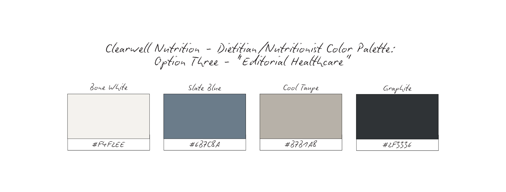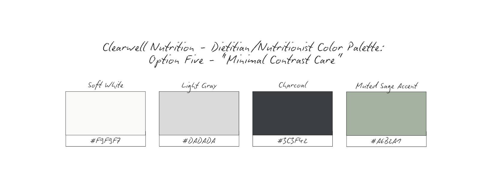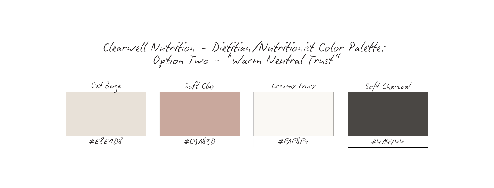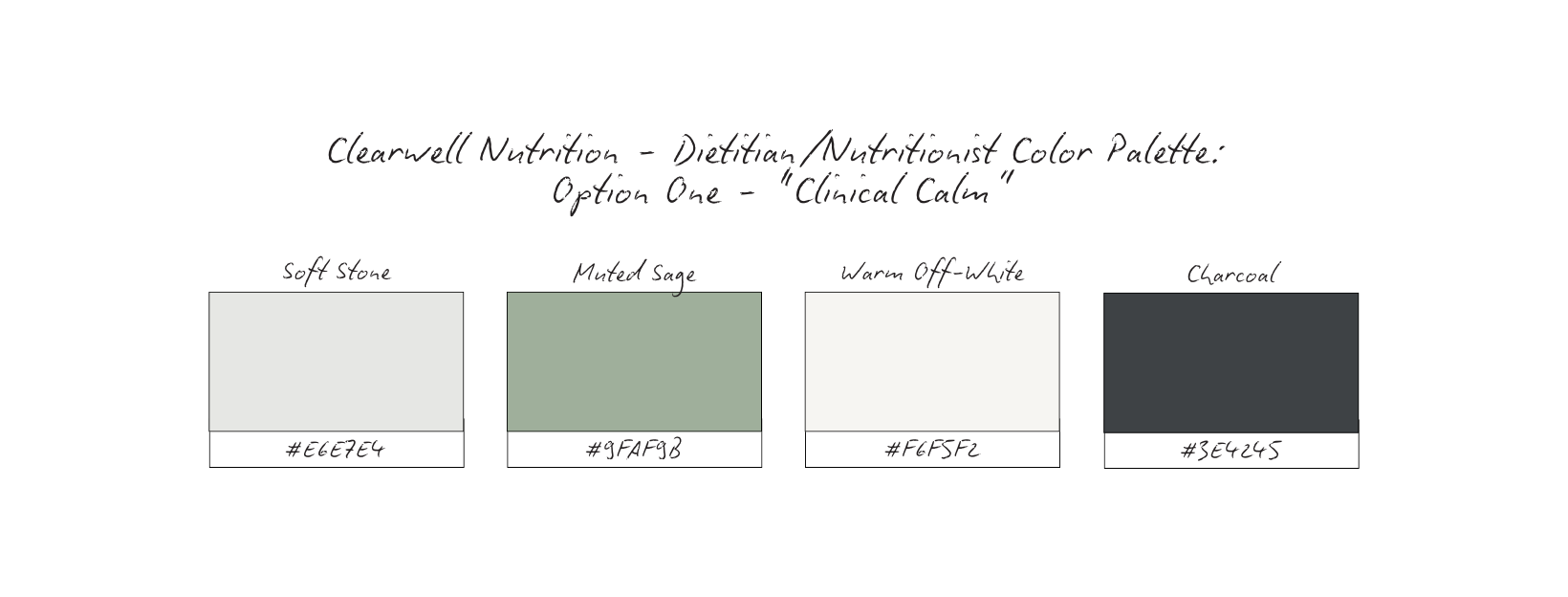 Each one was intentionally designed to support trust, professionalism, and emotional safety within a nutrition-focused brand. None of these palettes are “wrong.” Each could work depending on the practitioner’s scope, setting, and client relationship.