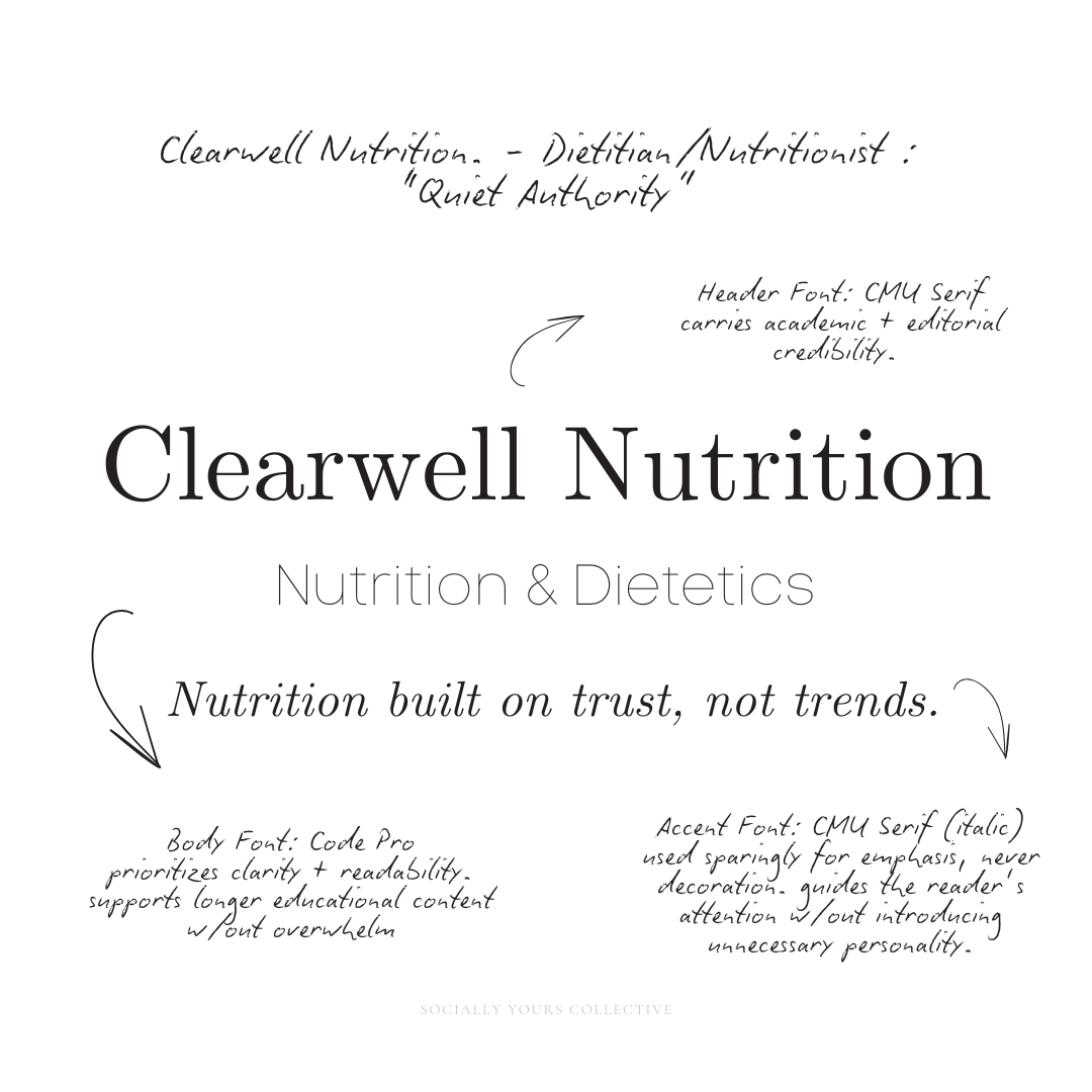 For Clearwell Nutrition, every type choice was made to support long-form education, professional trust, and accessibility—without feeling clinical or cold.